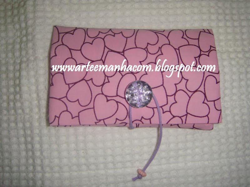 Outra novidade... talvez, seja novidade só prá mim, rsrs Porque já vi semelhantes em outros blogues, mas, esta é a "minha" carteirinha 3 em 1, rsrs Com meu "molde", com o meu "toque"!... Fiz a partir de medidas que concluí caber meus trecos.